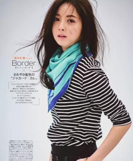 佐佐木希:單色橫條紋X愛馬仕Hermes明媚絲巾