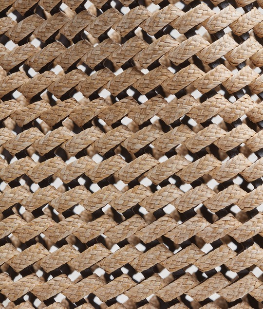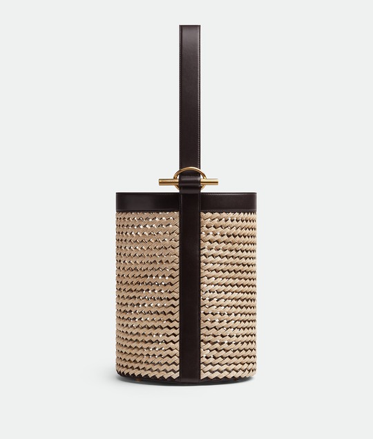 Cassette 肩背包將拉菲草通過鉤編工藝制作,呈現標志性的編織方塊紋路,流露出質樸手工氣息;水桶包將拉菲草編織成鏤空斜紋造型,營造出清透空氣感,棕色皮革和金屬裝飾成為點睛。