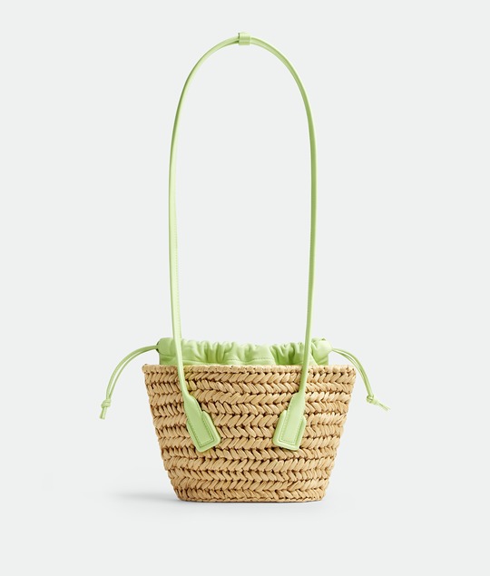 Arco Basket 手拎包采用天然拉菲草編織打造,小號尺寸飾以茴香綠色皮革提手和束口內袋,流露出自然清新氣息。包包可手拎或單肩,與都市和度假場景都能適配。