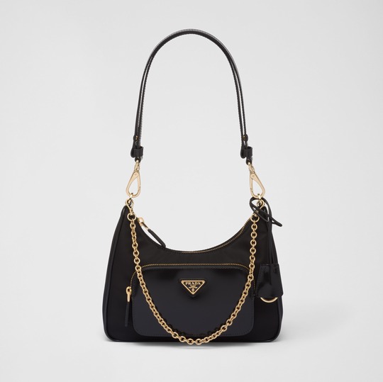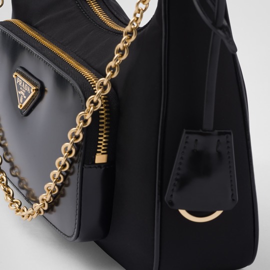 這2只黑色包袋采用漆面皮革+再生尼龍拼接制作,在輕松隨性的氛圍中注入一絲精致感。