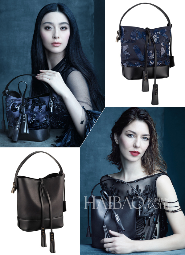 兩種改編版的T臺款讓這一系列更加完整。在Edie Campbell的肖像系列中,鉚釘小牛皮款的NN14有了一些搖滾的味道。在范冰冰的肖像系列中,在T臺秀上非常亮眼的StephenSprouse經(jīng)典涂鴉元素,則以午夜藍Monogram緹花包款為基底,搭配黑色亮片刺繡而成。