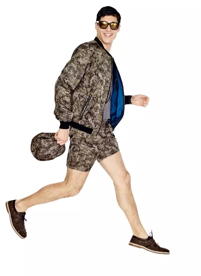 卡其綠色的風衣及短褲配上西西里花園圖案, 最適合休閑旅游時穿著。