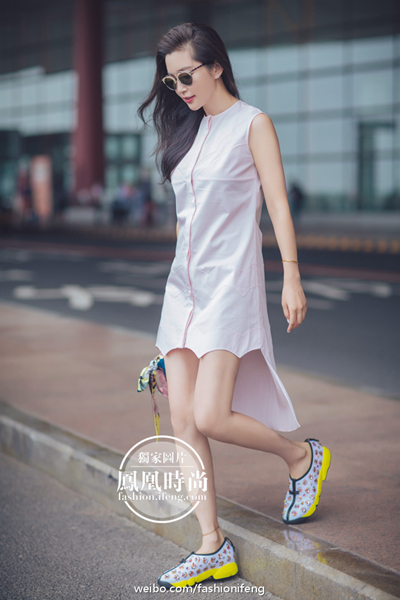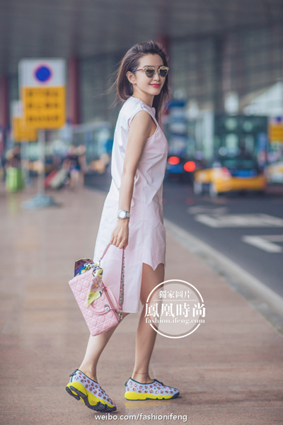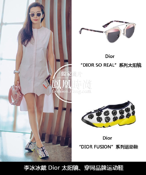 北京時間2016年7月3日,李冰冰啟程2016秋冬巴黎高定周,冰姐一襲淡粉色連衣裙搭配同色系手袋,清甜美艷。Dior SO REAL太陽鏡搭及運動鞋的搭配更添活力俏皮,為這個炎熱的盛夏帶來一絲清涼,仙范兒十足。此行她將前往巴黎Dior大秀,讓我們一起期待冰姐的華麗亮相吧!