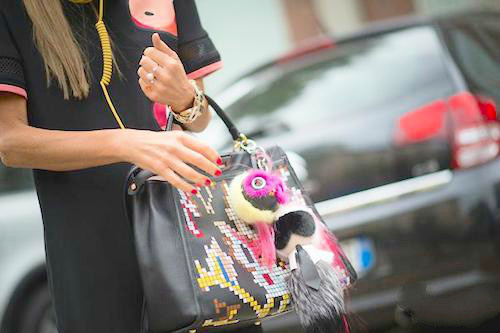 或者綁個絲巾,再土豪點,掛個水貂毛FENDI吊墜……