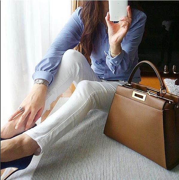葉女士個子很高,年輕的時候在日本留學,模特般的氣質,拎著這個新出的peekaboo中號,說是中號,其實一點都不小,她的氣場完全能 hold住,而常年留日的那種內斂的女人味,也讓peekaboo和她配一臉,我幾乎是用一種仰視的眼神,躲在角落里偷瞄她,心里想,一個女人怎么可以有那么好的氣質。我當時只是個小編輯,個子小,年紀小,資歷淺,覺得這個包很美,雜志拍攝外借的時候,就看了下價格,記得當時價格是2w不到,但是在7年前,那個價格與我,等同天價。