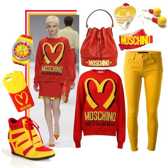 而Moschino在創(chuàng)立初期最火的設(shè)計(jì)則是一件“餐具”套裝,他將西餐中的叉子、勺子作為外套上的裝飾品,衣服就如同一張準(zhǔn)備開動(dòng)的餐桌。