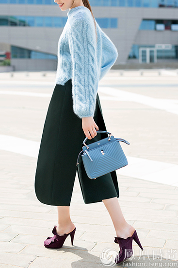 Dotcom Click純色皮革款有淡藍、深紅和黑色可選,并以皮革及絨面革營造撞色效果。手袋上的鍍鈀金屬配件與銀色FENDI Roma標志完美呼應,特別版則是由黃金打造出飾品效果。經典FENDI鉚釘鑲嵌于內袋之上,并可從外部窺見,賦予這一經典手袋以細節之美。