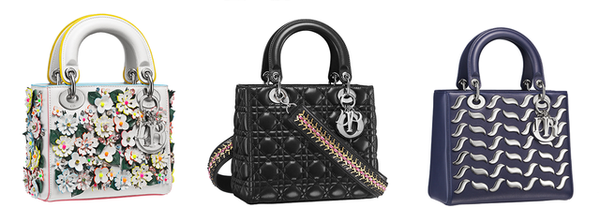 而到了2016春夏,Lady Dior系列則像鮮花一樣盛放了開來,立體鮮花、卡通拼貼等鮮艷、大膽、年輕的設計應和了春季的生機與活力,Dior更順應潮流為Lady Dior新系列配備了極具設計感的寬肩帶,滿滿的少女氣息令人愛不釋手,粉絲們竟做了編輯的工作,將2016各新款戴妃包做好了長圖,令人嘆為觀止。