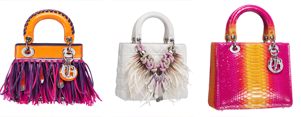 在2011年春夏系列中,Lady Dior 手袋則大量運用撞色、拼色等色彩感強烈的設計,或以對比強烈線條重新演繹經典的藤格紋,讓高貴優雅的戴妃包帶上了卡通俏皮的感覺,愈發年輕化;此外還推出了流蘇裝飾的戴妃包,洋溢濃濃的波希米亞風格,令人耳目一新。