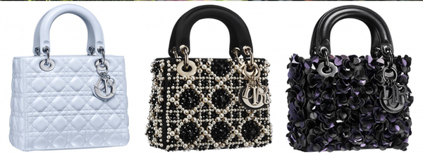 時光邁入2013年,早秋系列中設計師用Lady Dior為所有的女性圓了公主夢想,將高級定制元素融入手袋設計中,手袋上布滿白色珍珠、黑色寶石或者手工鮮花,將奢華表現的淋漓盡致,同時也推出了一系列柔和溫暖的色彩,似乎要將夏季的暖意綿綿延續下去。