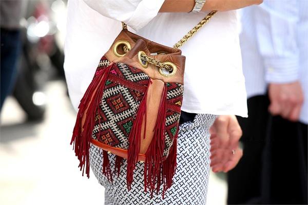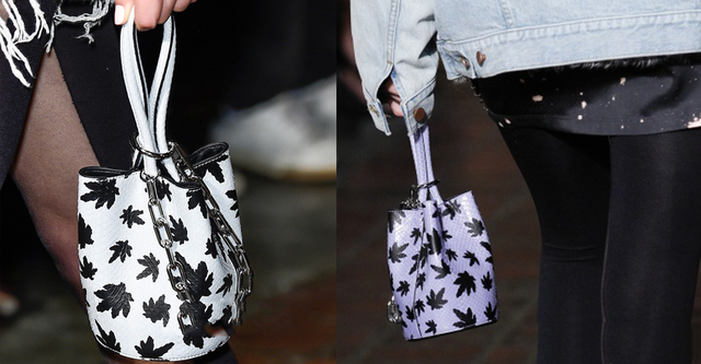 扁一點也好,小一點也好,就像鄭秀妍手中已經快沒原型的水桶包一樣,亞歷山大王同學則是致力于追求脫離“桶”這個概念,曼麗印花搭鎖鏈再配以水桶包的起伏感,當真是時尚改革的好大仁。