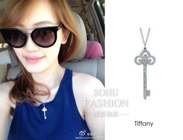 你以為王蓉只是想曬曬自拍嗎?馬蓉戴的可是Tiffany家的項鏈,鳶尾花形鑰匙吊墜做配飾,鉑金鑲圓形明亮式切割,專柜價要3萬塊軟妹幣,而且還是韓劇《想你》同款。