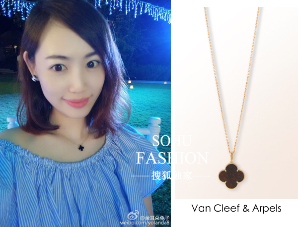 馬蓉常戴的四葉草項鏈來自法國著名珠寶奢侈品品牌梵克雅寶(Van Cleef&Arpels),價格上萬起,耳環(huán)也是愛馬仕的。