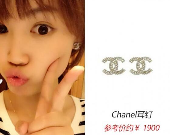 就算家中自拍,也不忘戴上1600塊的香奈兒淺金色鑲鉆水晶耳釘。