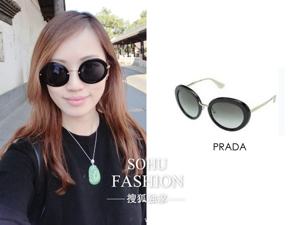 而另一張暢游古鎮(zhèn)的照片里,她白皙的鵝蛋臉配上Prada PR 16QS黑色墨鏡也是恰到好處,4000塊算神馬!胸前的玉佩看成色也是上好的寶貝了!