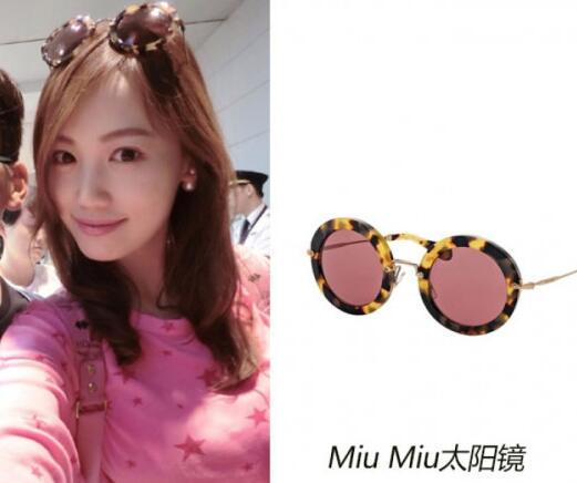 還有這款Miu Miu墨鏡4000多RMB,但圓形玳瑁紋貓眼邊框,更顯另類復(fù)古個性十足。這款自拍中,耳環(huán)換成了Dior的珍珠耳釘,價格4600元。