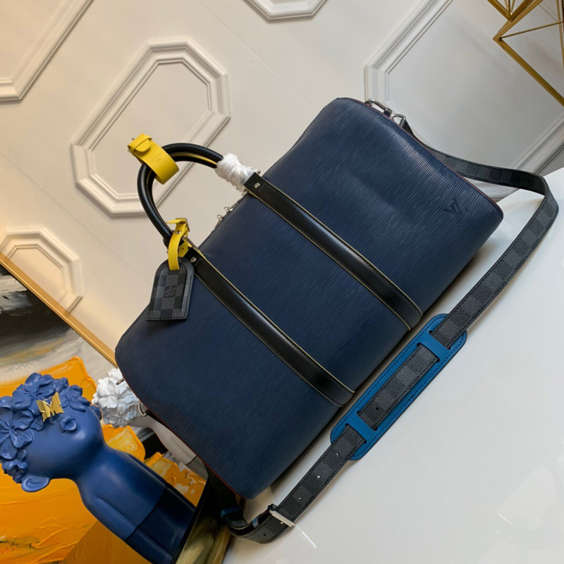 - M55149 LV Keepall 50旅行袋 Epi皮革配Damier Graphite帆布 藍色